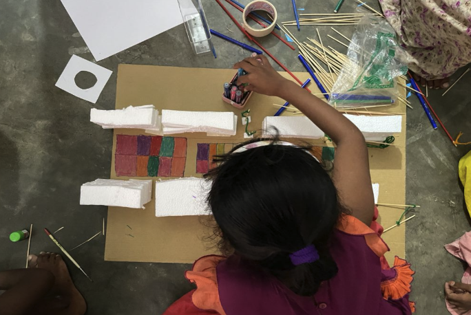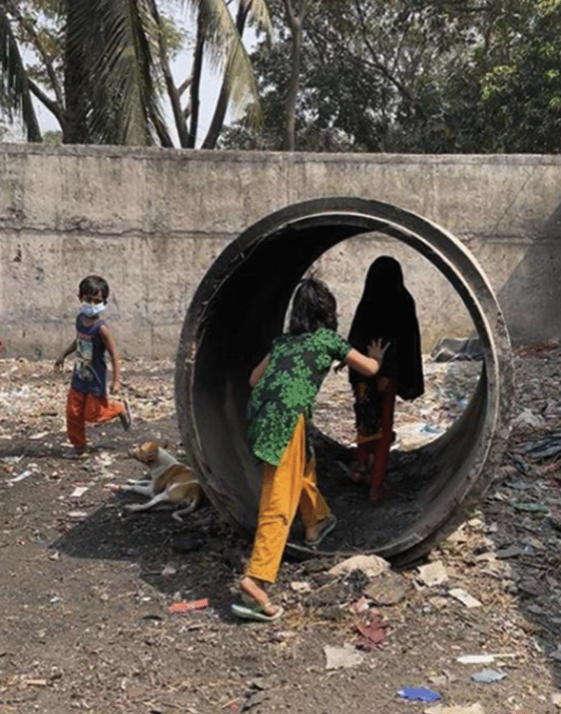During and after Covid-19 pandemic the low income communities were facing increased school dropout rates due to the employment crisis.  As project lead, I started the planning process, with  open-ended discussions with the community members and led them to community engagement events, holding art and storytelling activities. The project’s capstone was asset mapping and model-making workshops with children, where they took part in finding locations for their new playgrounds and designing them. It advocated for creating children-led designed playscapes that are easy to build, promoted use of local materials and local craftsmen, and encouraged parental engagement.