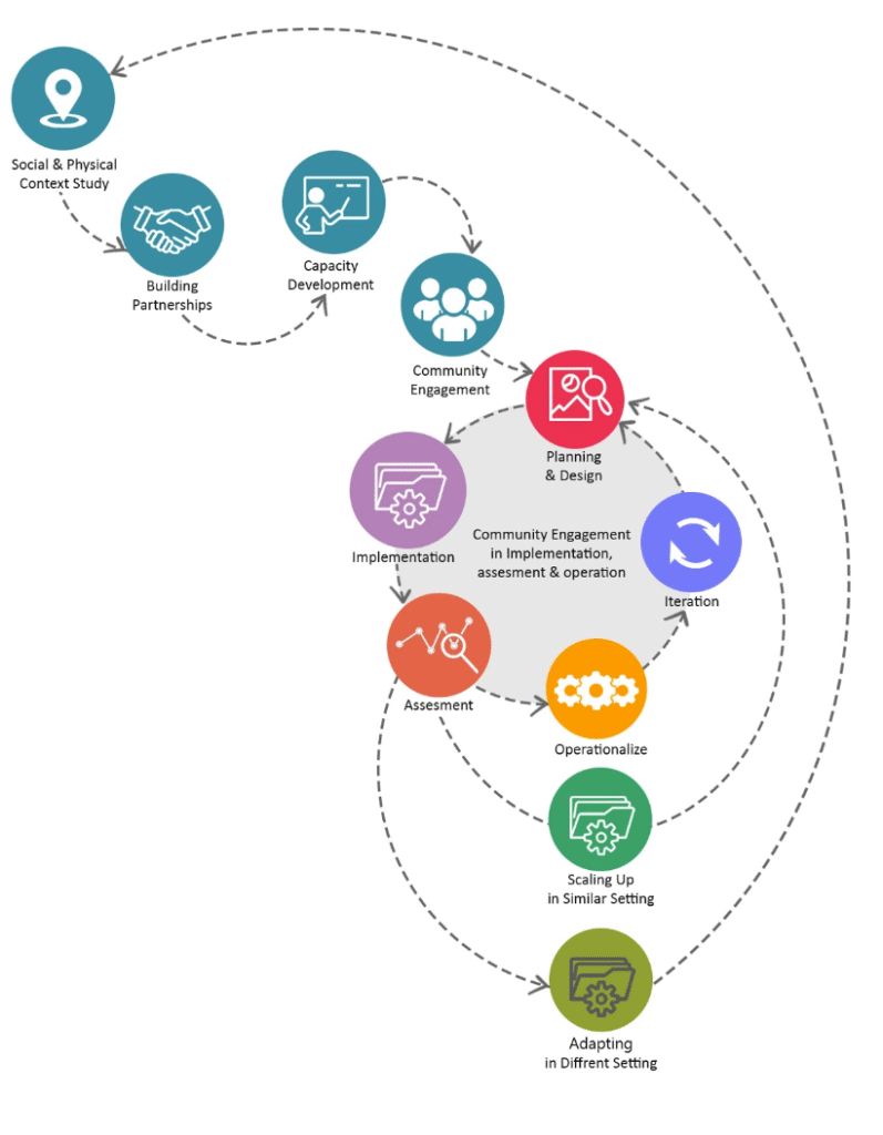 In the preliminary phases, the project used funding from donors (Real Play Coalition and PlacemakingX) and utilize human resources from on-going BRAC projects in different low-income settlements. In the next phases, it built upon further partnerships with community organizations and municipalities, who made it possible to implement and operationalize more economically sustainable playscapes. Capitalizing on BRAC’s existing partnerships with national and global organizations and governments turned out to be a good starting point in scaling up the project. The different components of the model was designed in a way so that they are economically viable and prototypical solutions can be easily replicated, thus it made the scale-up process easier. To adapt the model in different contexts, the project also researched on the local culture, resources and markets for creative design solutions and implementation techniques which are socially and economically feasible