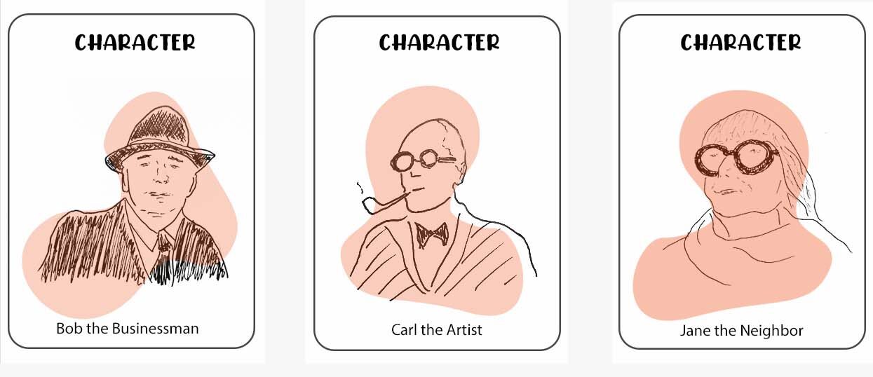 1. Characters: Bob the Businessman, Carl the Artist, Jane the Neighbor