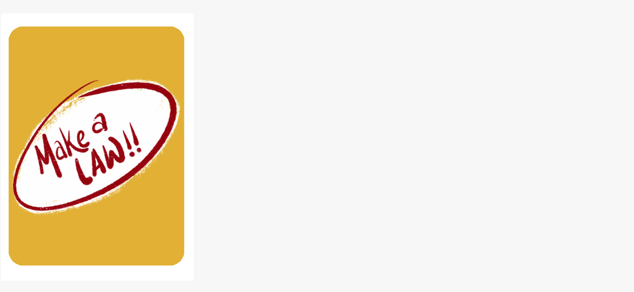 If another player uses a law card later on in the game, they have the option of either a) deciding to get rid of Player 3’s original rule, OR b) creating a new rule of their own.